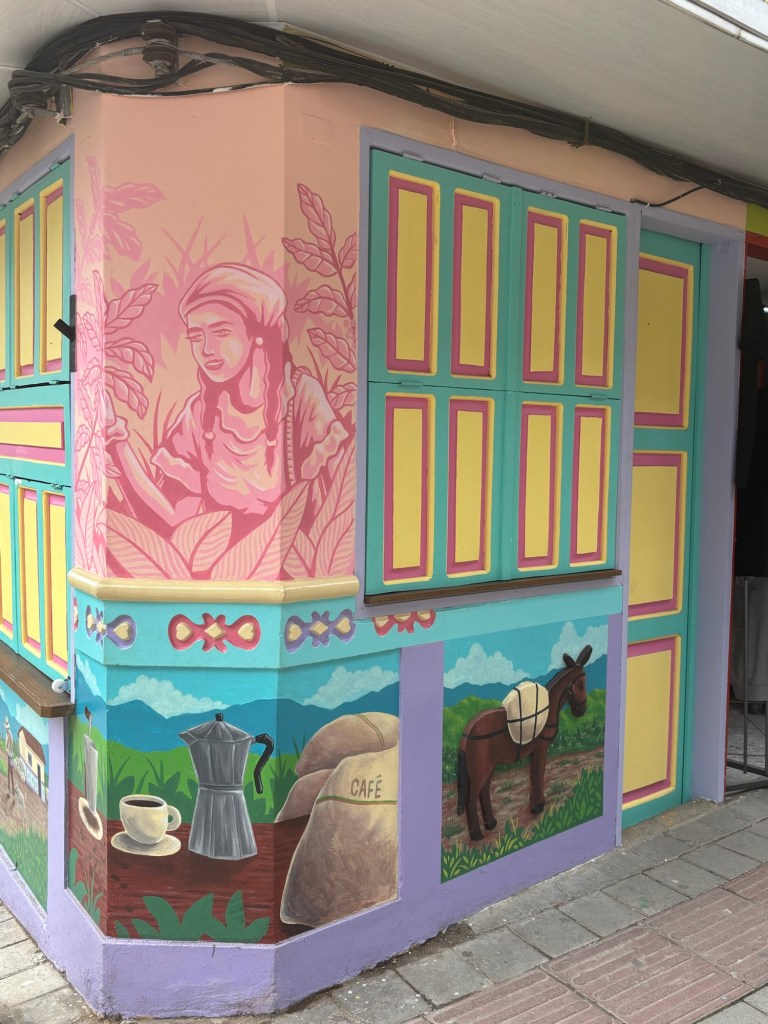 After Piedra del Penol we took a “Motochiva” (TukTuk) into the town of Guatape which was beautiful. The buildings are all colourfully painted, with paintings representing the towns history. We spent the best day exploring the town, having lunch at a Cuban “restaurant” (basically a local Cuban family’s living room that they use as a restaurant), and finishing up with coffee and cake next to the lake!
