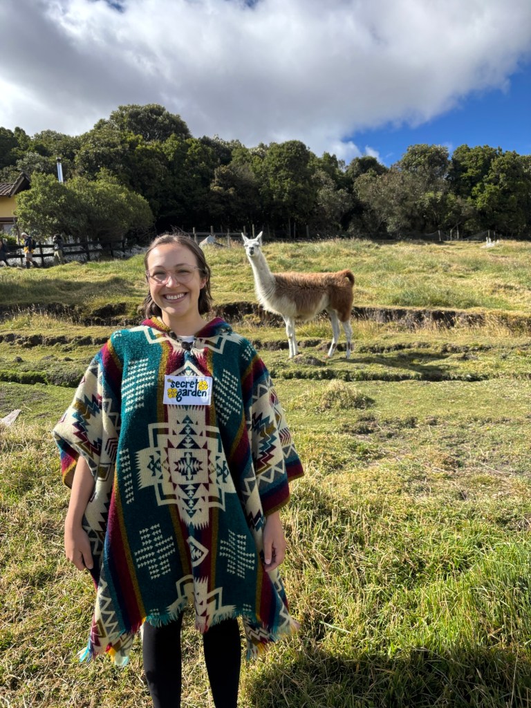 Our hostel in Cotopaxi was absolutely beautiful, with amazing views of Cotopaxi Volcano and other surrounding mountains! It was really social, so we made friends with lots of other travellers. They even had llamas that you could feed, and ponchos to wear around the hostel! Our room was a hobbit home which was very cozy (but very contentious given Em hasn’t seen all of the Lord of the Rings movies, and therefore wasn’t worthy).