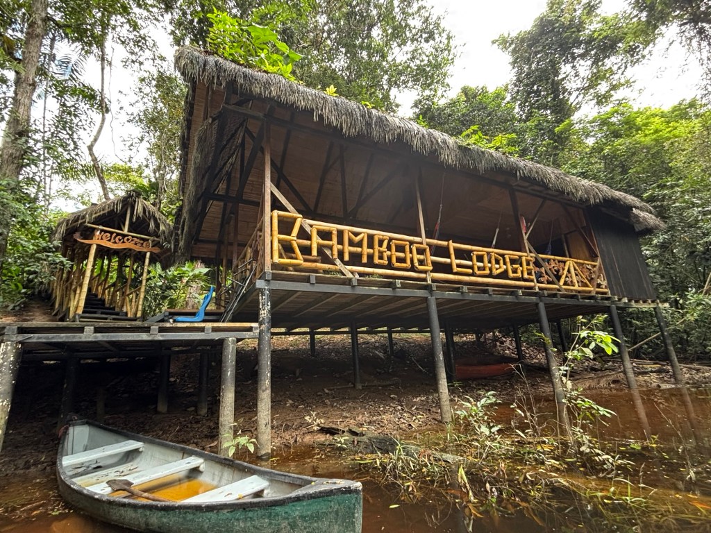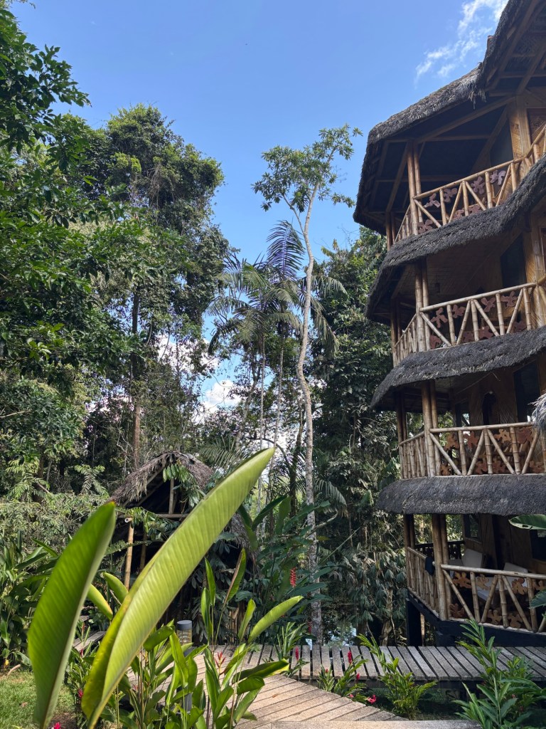 After a very, very long journey to Cuyabeno from Quito (we left Quito at 8.30pm and didn’t arrive until 2pm the next day!) we arrived at the beautiful Bamboo Lodge! The lodge is only accessible by a two hour canoe ride from the nearest road access.