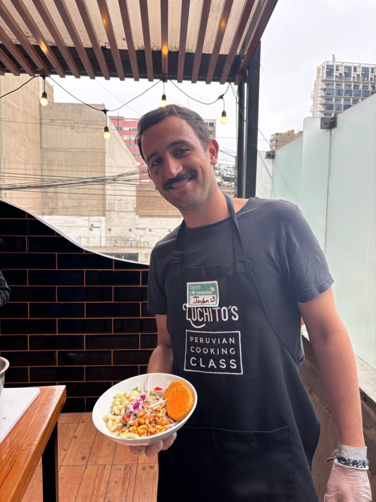 The highlight of our time in Lima was a cooking class where we learned to make chicken causa, ceviche and of course pisco sours! The food was delicious, and we met some really great people in the class.