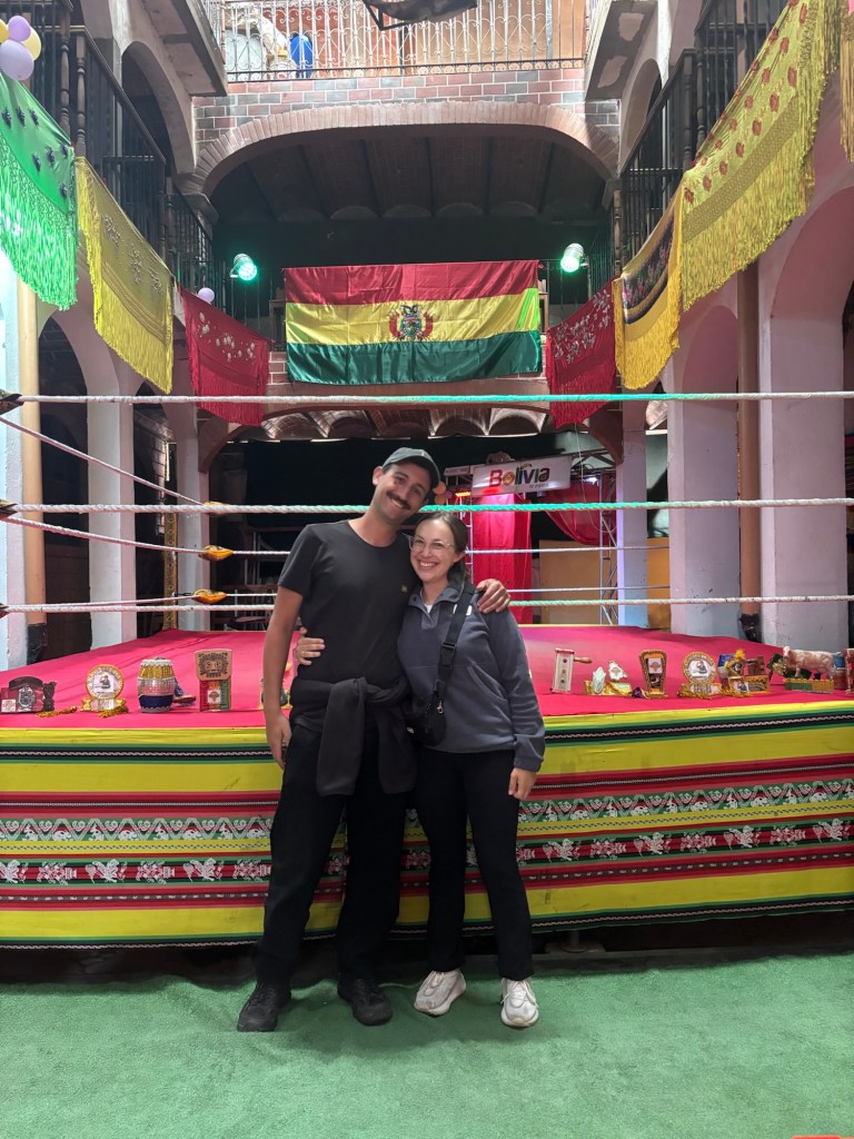 Another very unique experience in La Paz was the “Cholita Wrestling”. This is a dramatised show where women in traditional dress “fight” (in a very scripted manner!) in front of a crowd. The background story behind the Cholita wrestling is really interesting; it was started by indigenous women in El Alto (adjacent to La Paz) as a form of empowerment. Now the Cholitas are also mountaineers as well as wrestlers, and have climbed some of the most challenging peaks in South America (also in traditional dress of course)!
