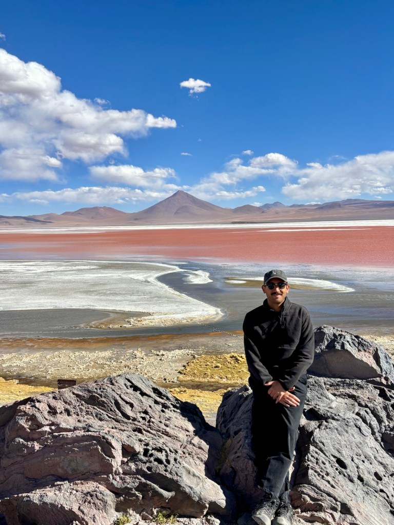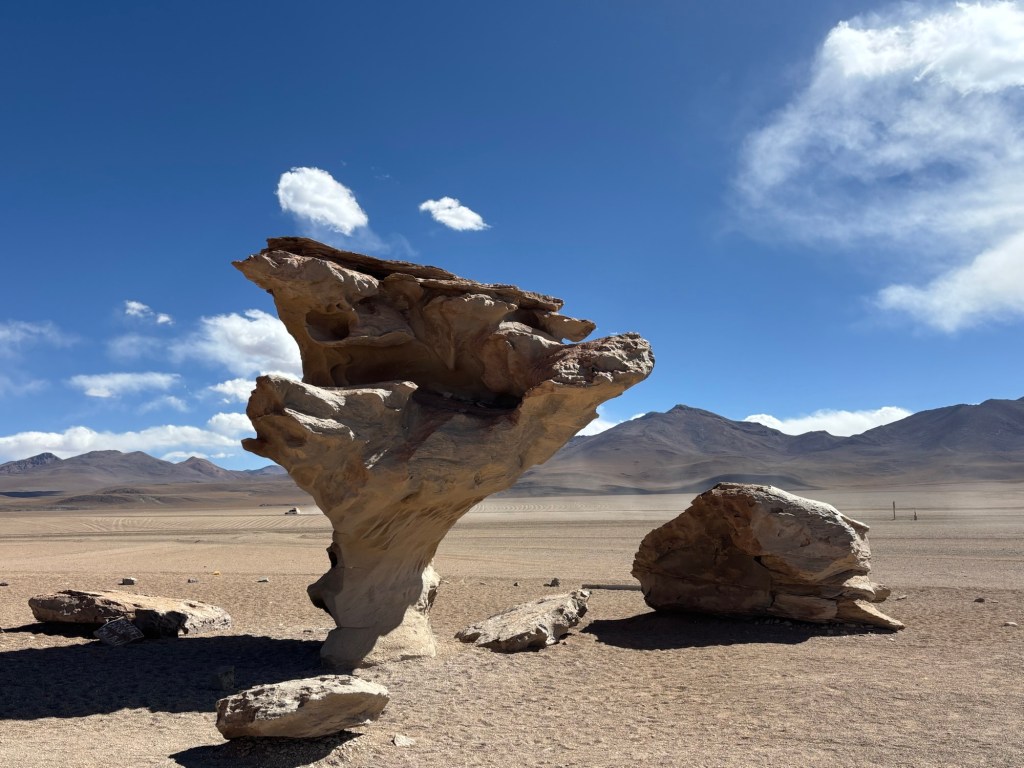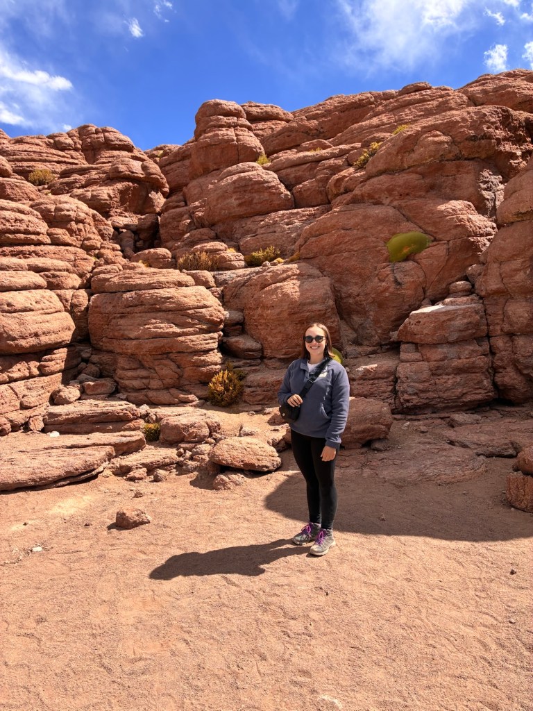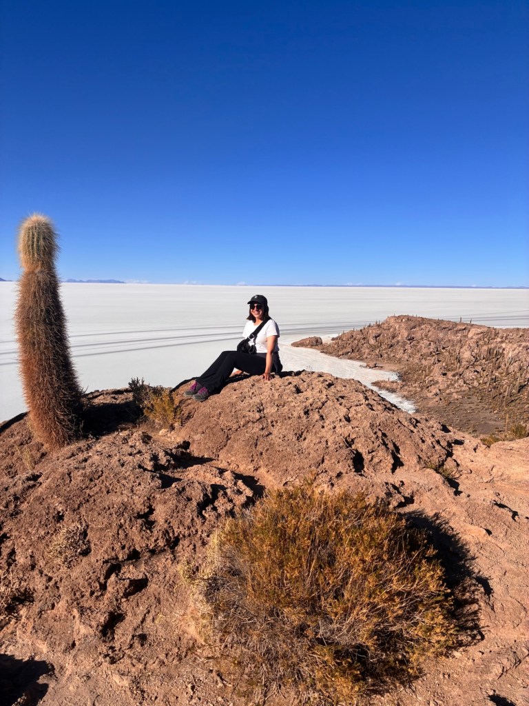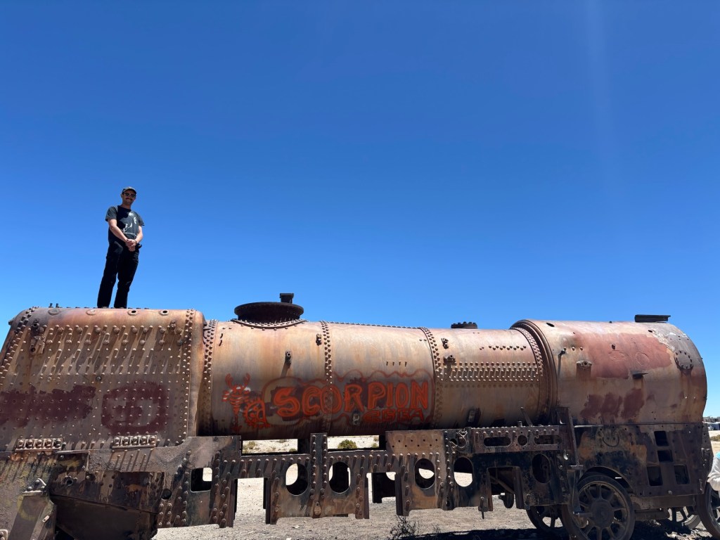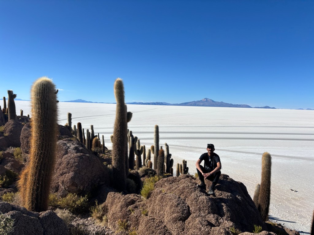 We travelled to the town of Uyuni by overnight bus before starting our tour of the salt flats and surrounds. On the first day of our tour we explored the train cemetery, where old steam trains that were previously used to transport salt were abandoned. After that we explored the salt flats, including lunch in an old salt hotel and taking lots of silly perspective photos on the salt flats! We visited the “island” of Incahuasi in the middle of the salt flats, one of the few sites with plant/animal life. We finished the day with sunset and wine before heading to our hotel for the night, built out of 90% salt.