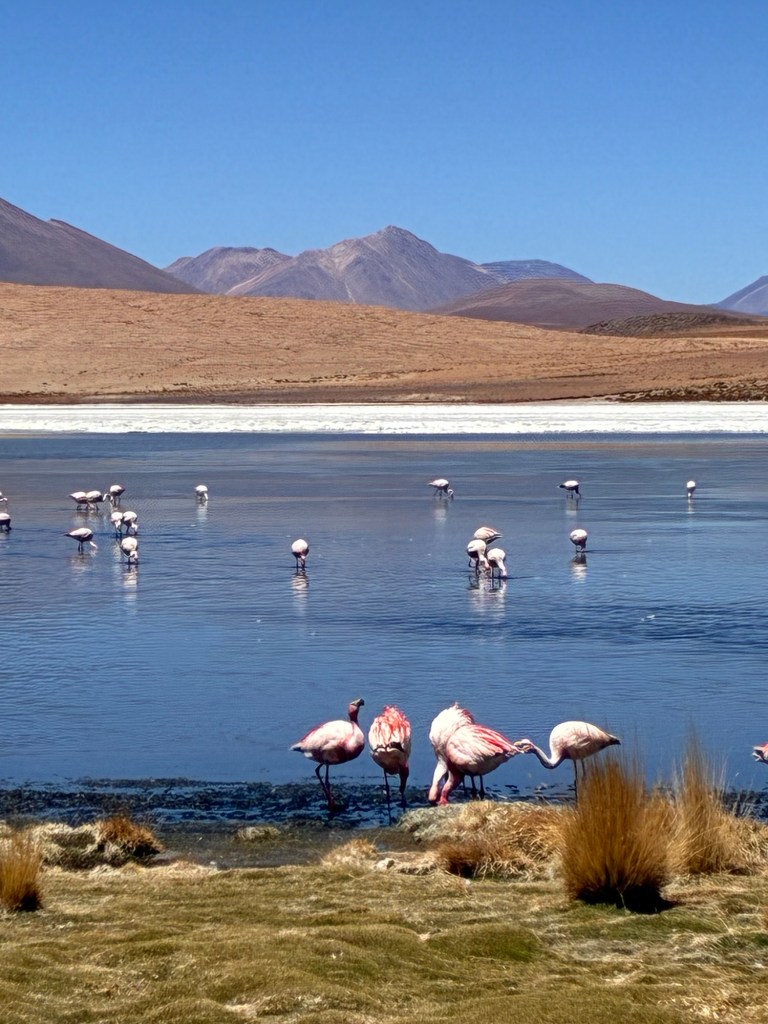 On the second day of our tour we explored some lagoons around the salt flats which were beautiful. We saw a lot of flamingoes which was so exciting! The lagoons have very different (and very vivid) colours based on their different mineral composition and the presence of algae. We also visited the Sioli desert, with incredible views of the surrounding volcanoes.
