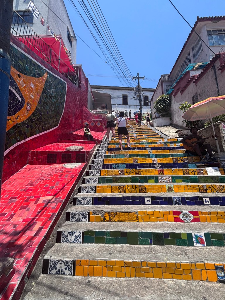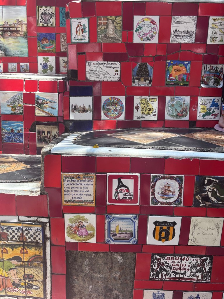 We explored the Santa Teresa neighbourhood, known for its street art and historic tram line. We took the tram through the neighbourhood, with views of some of the art as well as views over Rio. We also visited the Selarón Steps which are decorated with mosaic patterns. We even found some Australia themed tiles!